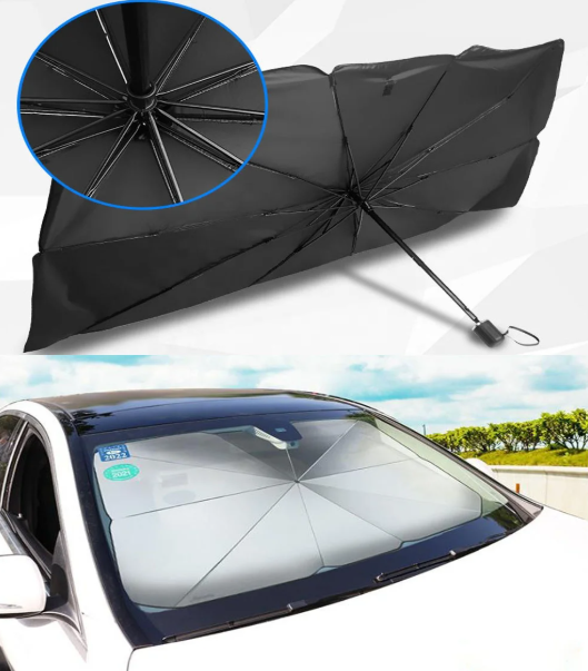 Sólskyggni, hlíf fyrir framrúðu, kemur í regnhlífaformi, fer lítið fyrir henni.
